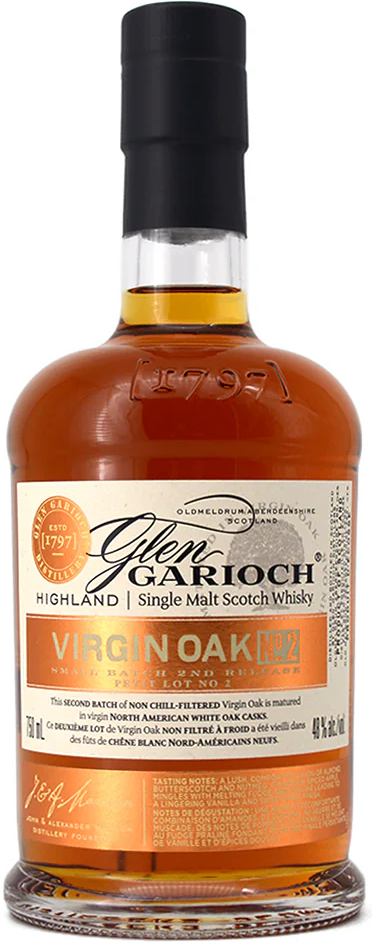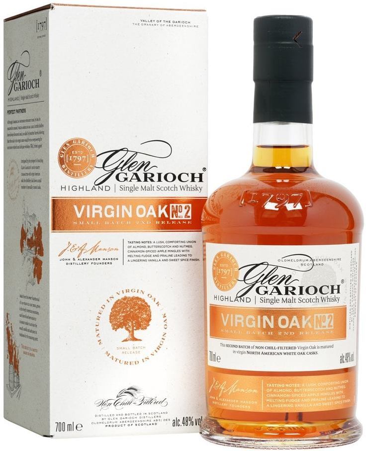 Glen Garioch, Virgin Oak — односолодовый шотландский виски, который был выдержан в новых североамериканских бочках из белого дуба. Виски прекрасен в качестве дижестива, с хорошей сигарой, кофе.