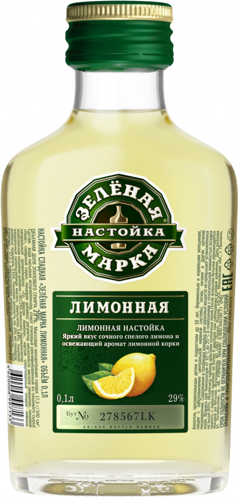 Зеленая Марка, Лимонная, настойка сладкая, 0.5 л.