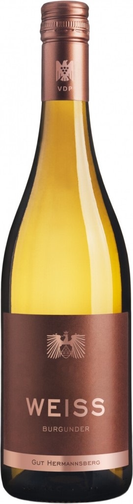 Gut Hermannsberg, Weiss Burgunder Trocken — свежее, молодое белое вино из винограда сорта Пино Блан, отражающее своей многогранностью все разнообразие почв региона Наэ. Универсальность этого вина уже очевидна в аромате, который впечатляет сочетанием цветочных оттенков и нот экзотических фруктов. Виноград для изготовления вина выращивается на экологически чистых (сертификат Fair'n Green) виноградниках поместья, большая часть которых имеет классификацию Grosse Lage Vdp, сопоставимую с французским Гран Крю. Основная часть урожая для этого вина поступает с участка "Винценхаймер Берг", что придает ему легкую сливочность и нотку, напоминающую хрустящие желтые яблоки. Тем не менее, оно получает свой выдающийся аромат и волнующий характер от бесплодной почвы "Купфергрубе".
