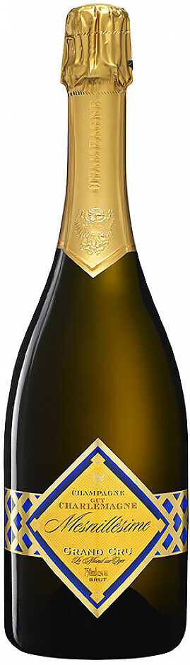 Guy Charlemagne, Mesnillesime, Grand Cru Blanc de Blancs — грандиозное шампанское из урожая с 70-летних лоз винограда сорта Шардоне, выращенных в Мениль-сюр-Ожер. Это настоящее сокровище Дома Ги Шарлемань, передающее изящество и изысканность терруара. Интересное название "Mesnillesime" образовалось в результате сочетания двух слов: "millesime", что значит "урожай", и Mesnil, части названия терруара.