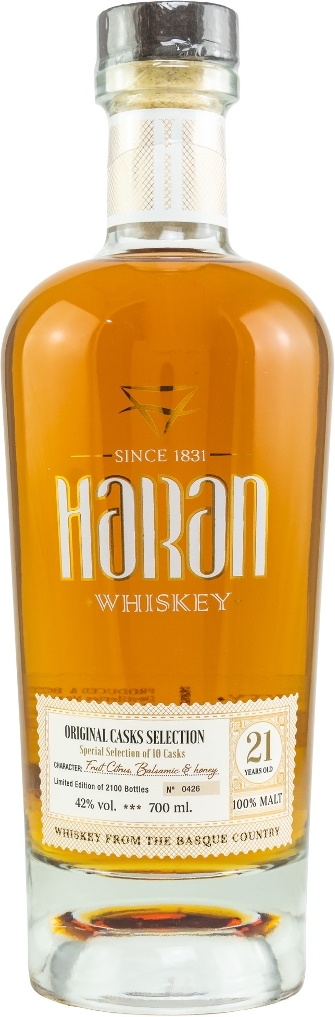 Haran, Original Casks Selection, 21 Years Old — испанский виски, в производстве которого используется отборный солод, прошедший дистилляцию по старинному семейному рецепту. Виски выдерживается в течение 21 года в бочках из иберийского, французского и американского дуба и бутилируется при крепости 42%. В переводе с бакского "Haran" обозначает "Долина". Название виски в какой-то степени связано с долиной Айяла, вдоль которой протекает река Нервьон. Виски рекомендуется употреблять в чистом виде в качестве дижестива, с добавлением льда или камней.