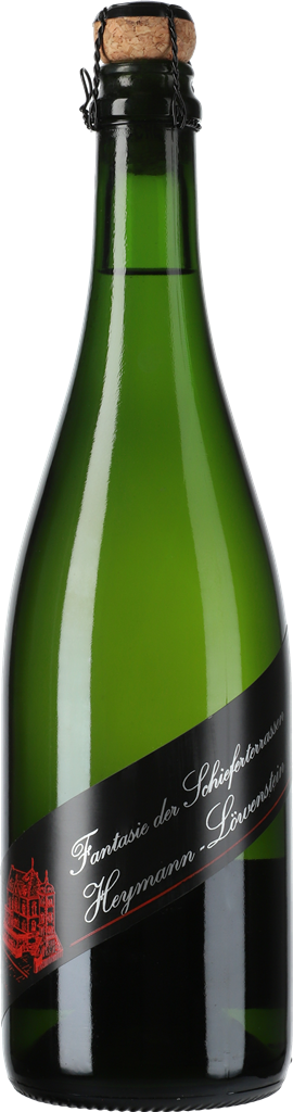 Heymann-Lowenstein, Fantasie der Schieferterrassen, Riesling Sekt — выразительное, сложное, утонченное биодинамическое игристое вино из винограда сорта Рислинг, собранного с 50-летних лоз. Виноград выращивается на 12 участках общей площадью 5,2 га со сланцевой почвой с высоким содержанием кварца, цвет которой меняется от серого до желто-коричневого. Виноградники разбиты на высоте 75-180 метров над уровнем моря в холмистой местности с уклоном от 100 до 150%. После ферментации и созревания на диких дрожжах в больших бочках в течение 10 месяцев вино без фильтрации и осветления разливается по бутылкам и выдерживается в них от 3-х до 6 лет. Потенциал хранения вина составляет как минимум 10 лет.