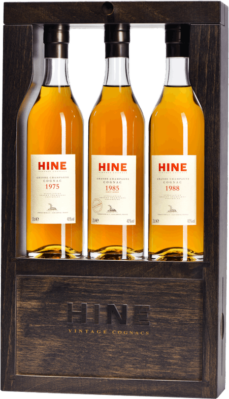 Hine Vintage 1988 — коньяк богатого янтарно-золотистого цвета с оттенками меда, цветов апельсина, подвяленой вишни и темного шоколада во вкусе и аромате.