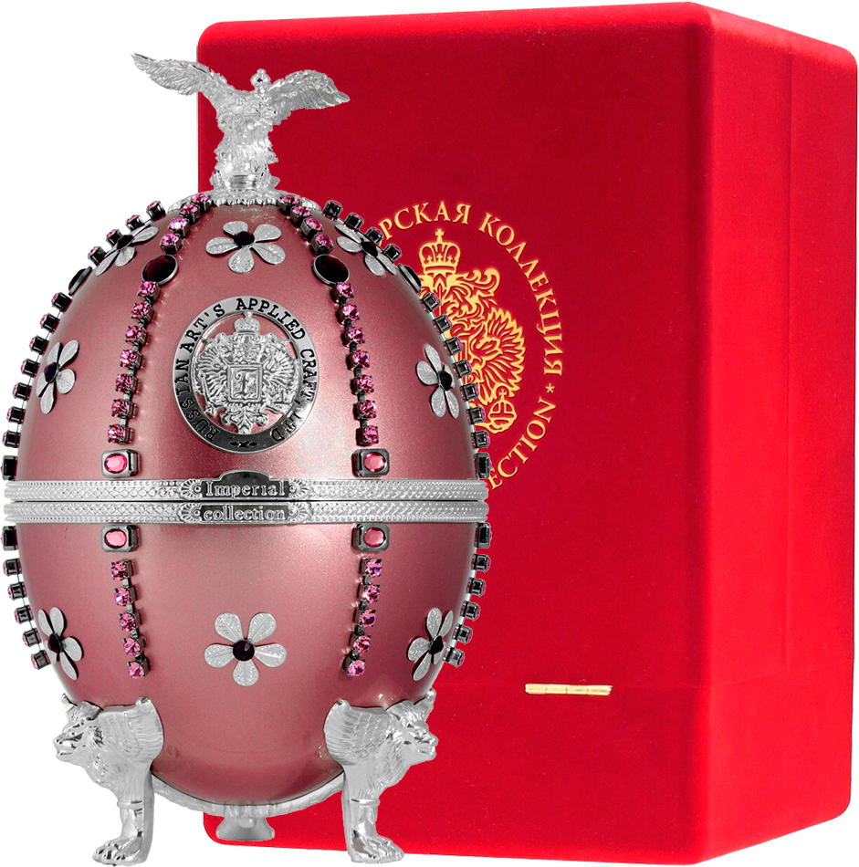Императорская Коллекция — водка супер-премиум класса, созданная дарить истинное удовольствие. Ее разливают в графин, который изготовлен из венецианского стекла и декорирован разноцветными камнями и натуральной позолотой. Уникальный футляр, выполненный в форме яйца работы всемирно известного Карла Фаберже, с первых секунд привлекает к себе внимание. Футляр-яйцо покрыт эмалью и украшен аналогично графину. В набор также входят 4 рюмки, изготовленные вручную из венецианского стекла, и прикрепленные на кронштейн золотистого цвета.