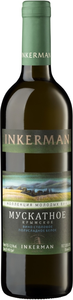 Мускатное из коллекции базовых вин завода Инкерман — прекрасное белое полусладкое вино, характеризующееся демократичной ценой и приятным вкусом. Вино производится из отборного винограда сорта Мускат янтарный, который винифицируется классическим методом при контролируемой температуре, после чего вино сразу же разливается по бутылкам. Отсутствие выдержки позволяет полностью сохранить яркий букет, легкость и приятный свежий вкус натурального винограда. Лучше всего "Мускатное" сочетается с неострыми сырами и бисквитами.