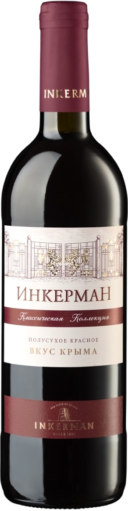 Инкерман, Полусухое красное — вино из классической коллекции Инкерман, которое создается из красных сортов винограда: Каберне Совиньон, Мерло и Пино Нуар, выращенных в Крыму и впитавших щедрость теплого солнца и свежесть морского ветра. Винификация проходит по классической технологии. Вино обладает гармоничным, насыщенным вкусом и приятным фруктово-ягодным ароматом с легкими шоколадными нотками. Оно хорошо сочетается с блюдами из красного мяса, мясом, приготовленным на гриле, теплыми салатами и твердыми сырами.