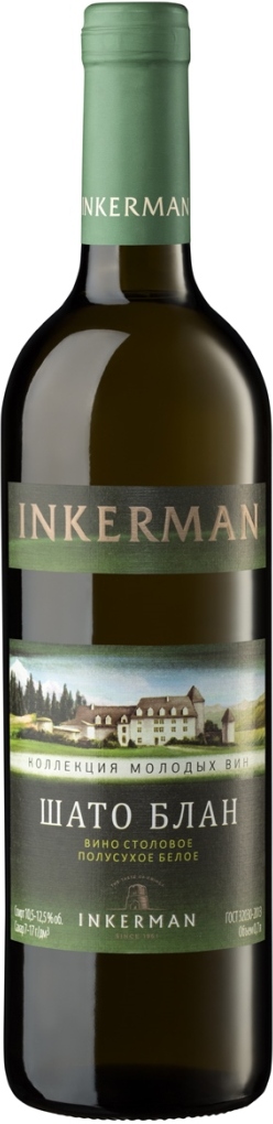 Шато Блан — легкое, освежающее вино из коллекции базовых вин компании Инкерман, созданное из винограда сортов Ркацители и Алиготе. Для сохранения легкости и воздушности, вино "Шато Блан" не проходит выдержку в дубовых бочках. Это повседневное вино прекрасно дополнит легкие салаты, несложные блюда из рыбы и белого мяса.