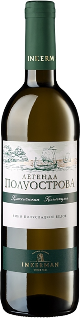 Инкерман, Легенда Полуострова — белое полусладкое вино из коллекции классических вин компании Инкерман, представляющей крымские традиции виноделия. Вино изготавливается из винограда сортов Ркацители, Рислинг рейнский, Мускат янтарный и Шардоне, выращенного в Альминской долине на западном побережье Крыма. Обильное количество солнечных лучей и прохладный морской бриз создают идеальные условия для культивирования винограда. Урожай собирается по достижении ягодами оптимальной спелости. Винификация проходит по традиционному методу создания белых вин. Вино отлично дополнит белое мясо птицы и телятины, паштеты, несладкую выпечку и нежные сыры.