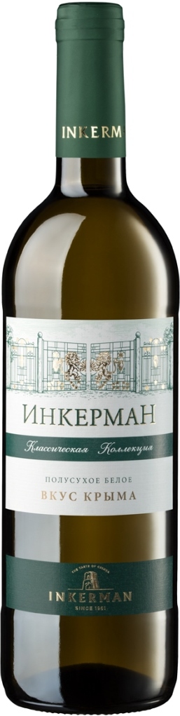 Инкерман, Белое полусухое — ординарное вино из коллекции классических вин Инкерман, ключевой коллекции, которая формируется с момента основания Инкерманского завода марочных вин в 1961 году. Вино создается из винограда сортов Ркацители и Алиготе, соотношение которых дает великолепный баланс вкуса и аромата. Вино хорошо сочетается с горячими рыбными и овощными блюдами, легкими закусками и мягкими сырами.