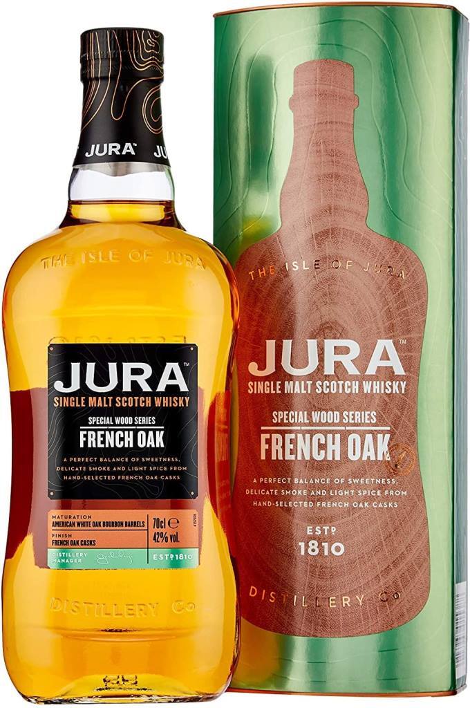 Isle of Jura, Special Wood Series, French Oak — элегантный односолодовый виски, представляющий собой идеальный баланс сладости, нежных дымных нот и легкой пряности. Серия "Special Wood" посвящена различным видам дуба, которые винокурня использовала для созревания виски с 1810 года. Как и каждый член команды винокурни Айл оф Джура, каждый дуб имеет свое происхождение, собственную историю и уникальный характер. Бочки из древесины дуба-долгожителя Quercus Robur, который растет в основном в Центральной Франции, придают изысканные и утонченные пряные нотки созревшему в них виски. Односолодовый виски Isle of Jura, "Special Wood Series" French Oak рассказывает захватывающую дух историю острова Джура и лесов. Сначала виски созревает сначала в бочках из-под бурбона из американского белого дуба, а затем уже в бочках из французского дуба, что обеспечивает прекрасный баланс. Специалисты рекомендуют употреблять виски в качестве дижестива и наслаждаться им в чистом виде, с добавлением небольшого количества воды или льда.
