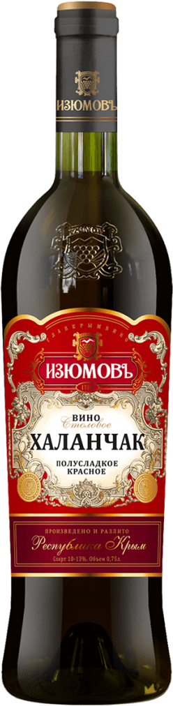 Изюмовъ, Халанчак — красное полусладкое столовое вино, которое создают из красных сортов, выращенных под щедрым крымским солнцем. Юг Крыма всегда славился своими виноградниками, а идеальный для вегетации микроклимат способствует развитию виноделия в этом регионе уже много столетий. Современные вина от Винодельческой компании Изюмовъ продолжают многовековую традицию создания качественных вин.