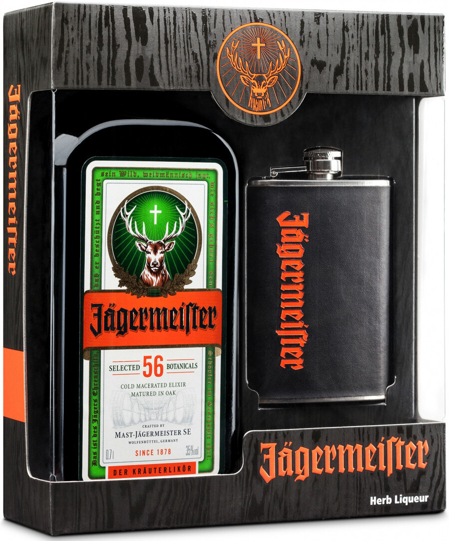 Ликер Jagermeister, with flask in gift box, 0.7 л.