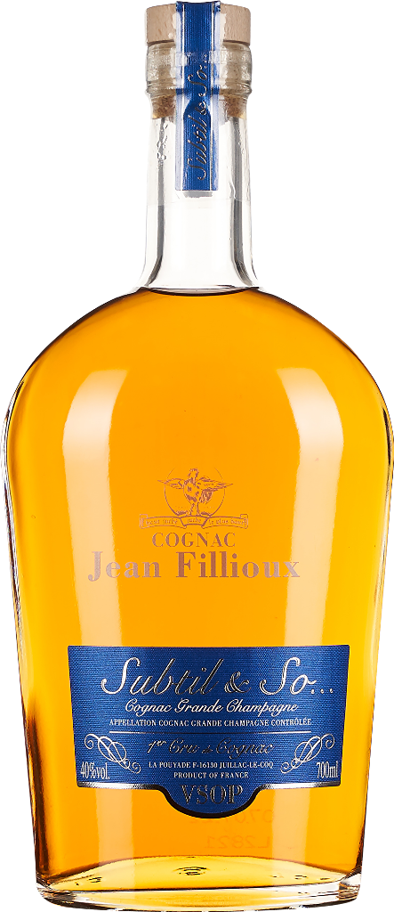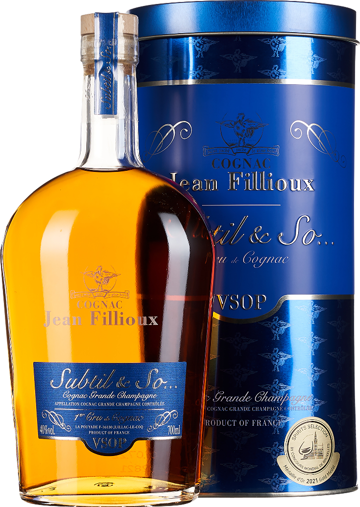 Роскошный выдержанный коньяк Jean Fillioux, Subtil & So VSOP изготовлен на основе спиртов, которые были произведены из винограда, выращенного в Гранд Шампань. Выдержка проходила в бочках из французского дуба на протяжении 4 лет. Бутилирование коньяка при крепости 41,8% было проведено в октябре 2020 года. Всего было выпущено 1500 бутылок.