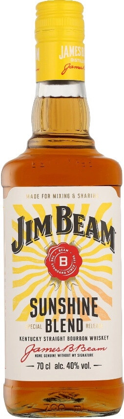 Jim Beam, Sunshine — особо мягкий и доступный, благодаря цветочно-фруктовому вкусу, виски, который идеально подходит для смешивания несложных летних напитков. Секрет этого бурбона — идеальный купаж классического "Jim Beam" ( 75% кукурузы, 13% ржи и 12% ячменного солода) и совершенно нового бурбона, приготовленного с использованием коричневого риса. В результате этой уникальной комбинации получается особенно сбалансированный и нежный виски. Дистилляция, как обычно, сначала проводится в колонне, а затем в кубе. Срок выдержки в новых обожженных бочках из американского белого дуба составляет не менее 2-х лет. Разливается "Джим Бим" Саншайн в бутылки при крепости 40% без окрашивания карамелью. Новинкой, которая имеет вкус лета и солнечного света, рекомендуется наслаждаться в особенно солнечные моменты: во время расслабленного отдыха после работы, вечернего ужина на террасе или в качестве классического аперитива. А также стоит попробовать фирменный коктейль на основе "Джим Бим" Саншайн с добавлением грейпфрутового лимонада.