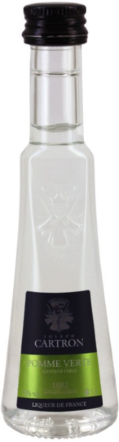 Ликер Joseph Cartron, Pomme Verte создается из отборных яблок сорта Грани Смит и Голден Делишез. Ликер Pomme Verte (в Испании Manzana Verde) производится из смеси концентрированного фруктового сока, лучших спиртов и сахара, в результате чего получается прекрасно сбалансированный напиток с натуральным ароматом и вкусом зелёных яблок.