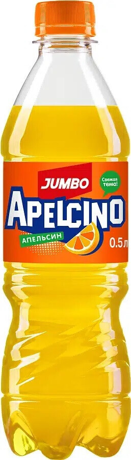 Jumbo Apelcino — безалкогольный газированный напиток, обладающий потрясающим вкусом с соблазнительными нотками сочного апельсина, который не только удовлетворяет желание в потребности чего-то сладкого и вкусного, но и быстро утоляет жажду благодаря оптимальному количеству пузырьков углекислого газа. Немаловажную роль в достижении чистого, приятного вкуса напитка играет питьевая вода Tassay, на основе которой он изготавливается. Вода добывается компанией из 5 собственных скважин Арысь-Бадамского глубинного месторождения подземных вод в предгорьях западного Тянь-Шаня в экологически чистом районе Казахстана. Оригинальный цитрусовый вкус "Джамбо" Апельсино мгновенно освежит и утолит жажду в любое время года.