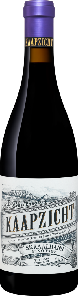 Skraalhans, Pinotage — новая, яркая, свежая и элегантная версия Пинотажа, названная в честь долговязого сорняка, встречающегося на виноградниках компании и часто вырастающего выше, чем сами кустовые лозы. Подход Каапзихт, основанный на невмешательстве, позволил виноградникам сиять, придавая вину глубокое ощущение терруара. Урожай для изготовления вина собирается с 21-летних кустовых лоз, посаженных в засушливую, неорошаемую выветрившуюся гранитную почву. Собранный вручную Пинотаж ферментируется на кожице в течение 3-х дней, чтобы обеспечить легкую экстракцию и сохранить свежую фруктовость во вкусе. После яблочно-молочного брожения вино выдерживается 10 месяцев в старых 500-литровых бочках. Потенциал хранения вина составляет 5 лет.