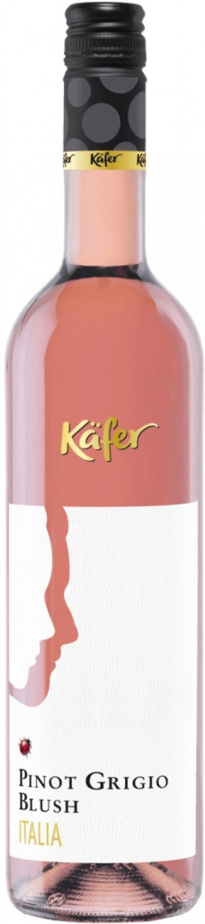 Kafer, Pinot Grigio Blush — яркое розовое сухое вино, изготовленное из винограда сорта Пино Гриджио, который выращивается в регионе Венето на северо-востоке Италии. "Blush" или "Поцелуй кожицы" — технология, по которой сделано вино. Пино Гриджио на самом деле имеет довольно темную кожицу, поэтому краткая мацерация наделяет вино красивым розовым цветом. Алкогольное брожение протекает в нейтральных емкостях, что дает возможность максимально передать вину природный аромат и свежесть винограда. Вино гармонично дополнит вкус рыбы, пасты, закусок, салата.