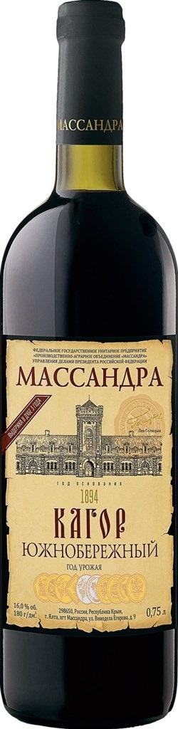 Массандра, Кагор, Южнобережный — марочное десертное вино, созданное из винограда сорта Саперави. Впервые вино было выпущено в 1933 году. Сбор урожая начинается только по достижении сахара в ягодах не менее 24%. На винодельне плоды подвергаются дроблению, нагреванию до 60°С и настаиванию перед ферментацией. Последующая выдержка в дубовых бочках длится не менее трех лет.