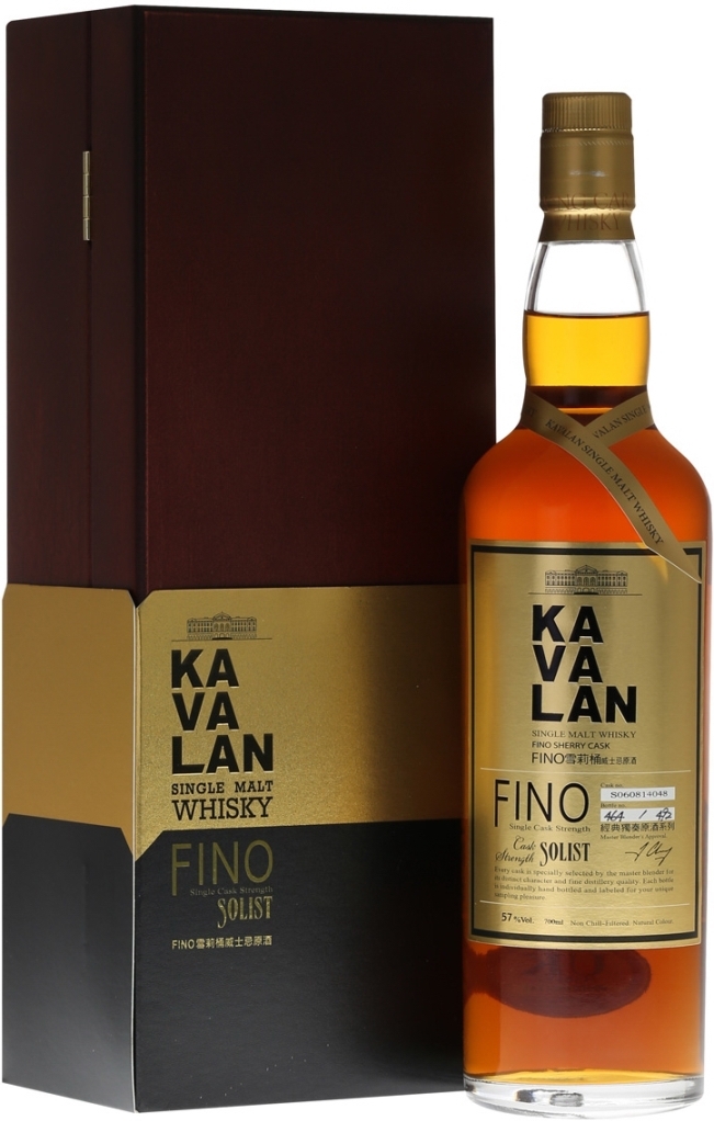 Kavalan, "Solist" Fino Sherry Cask — односолодовый виски, при производстве которого используется чистейшая вода из горных источников, которая и определяет стиль и качество этого виски. При изготовлении виски не подвергают дополнительному окрашиванию и холодной фильтрации. Виски отличается глубоким цветом изюма, ароматом, который насыщен нотами темных фруктов. Полный вкус виски раскрывается нотами спелого винограда, нюансами дубовой древесины, специй и завершается сухим и продолжительным послевкусием, которое порадует богатыми ванильными тонами.