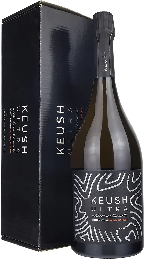 Keush, Ultra, Blanc de Noir Brut Natur — элегантное белое игристое вино из красного сорта винограда, о чем свидетельствует его название Blanc de Noir (Белое из Черного). Арени для его создания выращивается в Вайоц Дзорской области на юге Армении, около села Хачик, горной деревушки с населением менее 900 человек. Виноградники расположены на высоте 1400-1800 метров над уровнем моря и обрабатываются местными семьями в течение нескольких поколений методами устойчивого сельского хозяйства. "Ультра" Блан де Нуар Брют Натюр изготавливается по традиционному методу, согласно которому вторичное брожение и выдержка на осадке в течение не менее 36 месяцев осуществляются в бутылках. После дегоржажа дозажный ликер не добавляется. Игристое вино идеально подходит ко всем морепродуктам, жареной рыбе, а также молодым сырам.