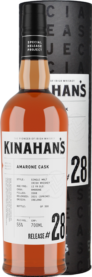 Kinahan's, Amarone Cask, Release #28 — уникальный виски, выпущенный в рамках лимитированного релиза "The Special Release Project". Исключительная коллекция бочек винокурни "Кинахан'с" позволяет ежегодно производить ограниченные партии виски, отличающиеся индивидуальностью и нетрадиционным вкусовым профилем. Special Release Project #28 представляет собой односолодовый ирландский виски, выдержанный 11 лет в бочках из-под итальянского Amarone и бутилированный при бочковой крепости 57,48%. Это редкий и нетрадиционный виски, выпущенный в количестве 300 бутылок и разлитый без холодной фильтрации.