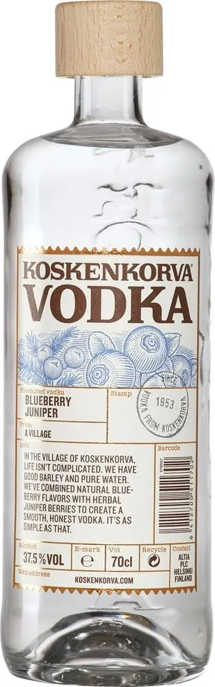 Мягкая и ароматная финская водка с добавлением натуральных экстрактов Koskenkorva Vodka, Blueberry Juniper - это богатый напиток, который может стать великолепным сопровождением вашего праздничного стола или подарком для делового партнера. Класссические ароматы северного леса в букете и спокойный уравновешенный вкус гармонично дополнят ваши блюда или коктейли.