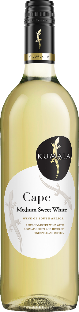 Белое полусладкое вино Kumala, Medium Sweet White, изготовленное из винограда сортов Шенен Блан, Коломбард и Мускат, отличается великолепным свежим цветочным ароматом и тонким вкусом с освежающей кислотностью и нотками яблока и груши в продолжительном послевкусии.