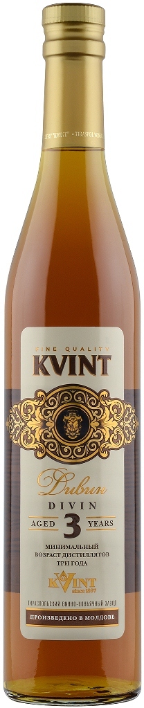 Kvint, Divin, 3 Years Old — ординарный молдавский коньяк, полюбившийся потребителям и у себя на родине, и за ее пределами. Продукция торговой марки "Квинт" активно продвигается и на мировом рынке благодаря достойному качеству. Коньяк создают из коньячных спиртов, полученных из выращенного в Молдове винограда. Дистилляты выдерживаются в дубовых бочках, что придает коньякам насыщенный, приятный вкус и благородный характер.