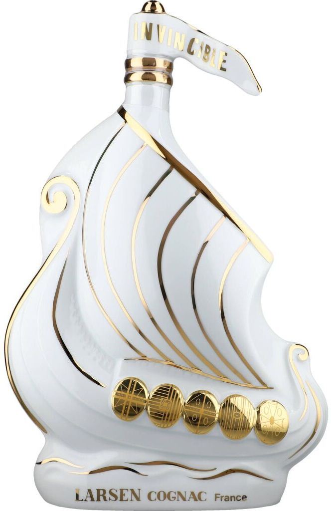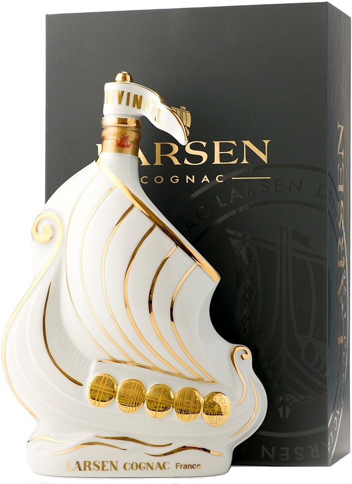 Larsen, Viking Ship — особый коньяк суперпремиальной категории, созданный из отборных виноградных дистиллятов. Для его производства использовались лучшие спирты из субрегионов Гран и Пти Шампань, которые были выдержаны в дубовых бочках от 4 до 15 лет. Высокий статус коньяка дополняет эксклюзивный дизайнерский графин из лиможского фарфора в белом цвете, украшенный позолотой (золото 24 карата). Декантер в виде корабля древних викингов станет превосходным подарком для коллекционеров и ценителей коньяка.