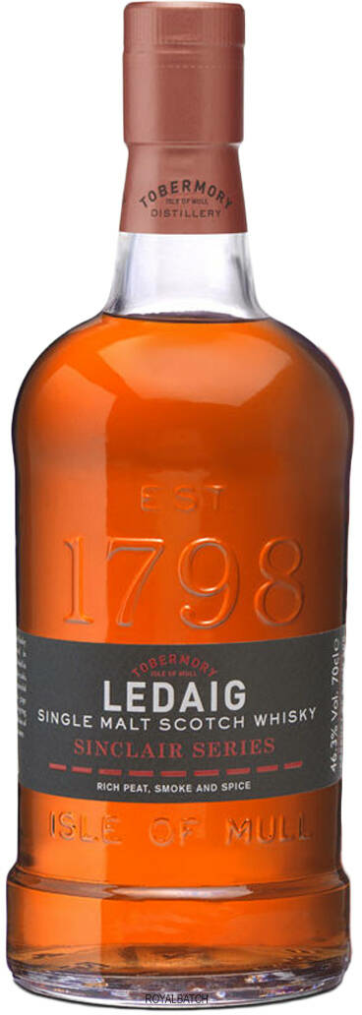 Ledaig, Sinclair Series, Rioja Cask Finish — роскошный виски, названный в честь основателя винокурни, Джона Синклера. Виски выдерживался в дубовых бочках, а финишная выдержка была проведена в бочках из-под вин Риохи. Виски прекрасен в качестве дижестива.