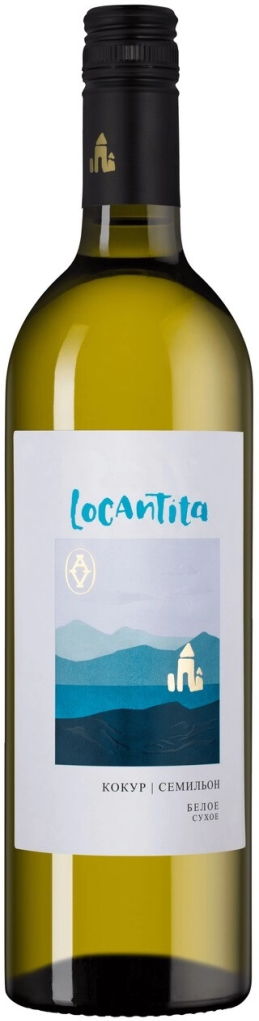 Белое сухое вино "Locantita" White Dry производится из винограда сортов Кокур и Семильон. Ягоды выращивают на щедрых землях Альминской Долины. Согласно традиционной винификации сусло подвергают ферментации при низких температурах в резервуарах из нержавеющей стали. Вино обладает легким, освежающим вкусом и прекрасно подходит в качестве дополнения для рыбных блюд и холодных закусок.
