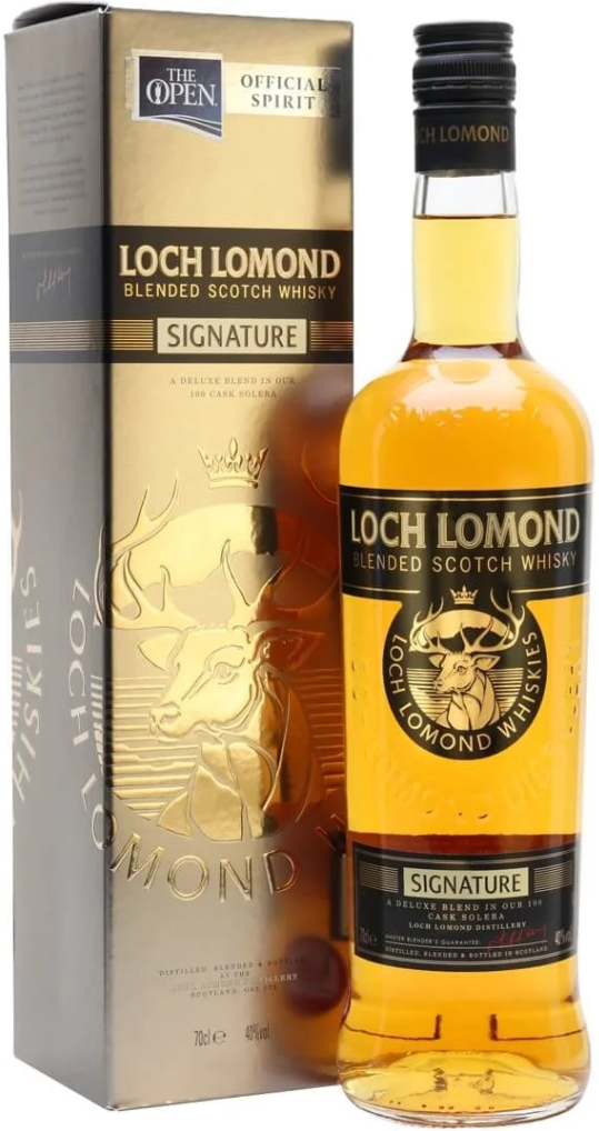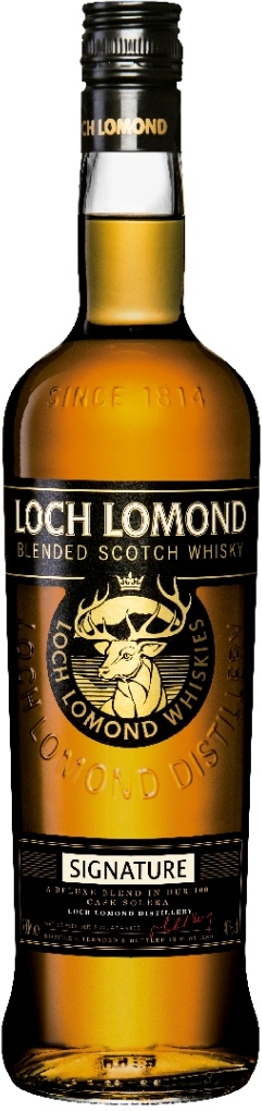 Виски "Loch Lomond" Signature — купажированный виски класса Делюкс, обладающий прекрасным соотношением "цена-качество". Виски долго и медленно выдерживается по уникальному методу — в системе Солера, состоящей из 100 бочек из-под хереса Олоросо и старых бочек из американского дуба, что делает напиток очень интенсивным и зрелым.