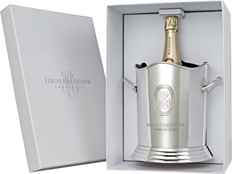 Луи Родерер Брют Премьер в элегантной фирменной коробке с ведерком для льда — роскошный подарок для любителей шампанского и ценителей прекрасного!