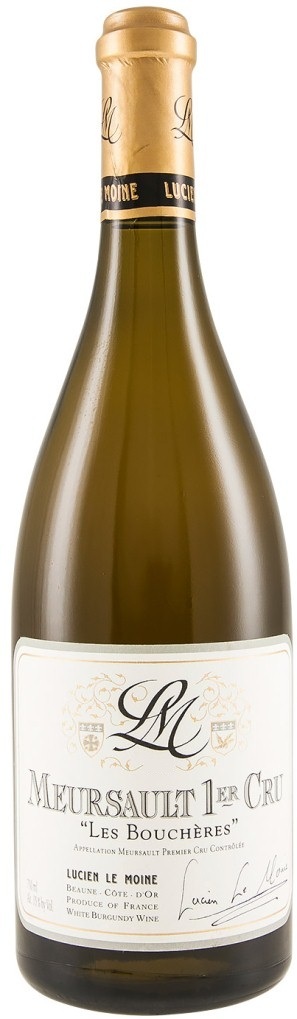 Lucien Le Moine, Meursault 1er Cru "Les Boucheres" — свежее и элегантное белое сухое вино из винограда сорта Шардоне, который выращивается на винограднике "Les Boucheres" класса Премье Крю в апелласьоне Мерсо. Он расположен в середине склона Кот-д'Ор к югу от самой деревни. Известняковые почвы виноградника с тонким каменистым верхним слоем плохо удерживают воду, что улучшает концентрацию сахара в ягодах. Виноградник имеет восточную экспозицию, поэтому урожай здесь созревает достаточно рано.