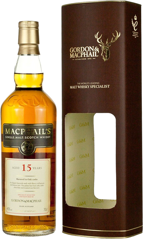 MacPhail’s, 15 Years Old — традиционный Speyside Malt Whisky, обладающий богатой палитрой и мягким характером. Способ его изготовления компания держит в строжайшем секрете, создавая тем самым некую атмосферу таинственности. Выдержка виски в течение 15 лет проходила в бочках из-под хереса. С годами длительной выдержки вкус виски смягчается и обретает характерное благородство.
