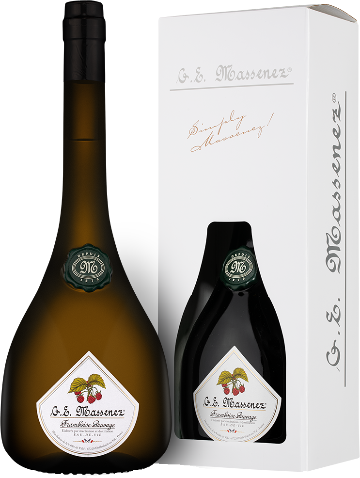 Massenez, Eau de vie, Origine, Framboise Sauvage — фруктовый дистиллят винодельни Массенез из серии "Origine", который отличается исключительной гладкостью и полнотой вкуса. Форма бутылки является репликой оригинальной бутылки самого первого бренди, выпущенного компанией. Это было в далеком 1870 году. Бренди олицетворяет собой возвращение к истокам ("Origine" в перев. с англ "Исток, начало"). Напиток произведен из ягод дикой малины, собранных вручную и тщательно отсортированных, а затем ферментированных и подвергнутых двойной перегонке, благодаря чему этот о-де-ви ("вода жизни") демонстрирует подлинный аромат настоящей свежей дикой малины. Малиновый бренди рекомендуется употреблять в чистом виде или со льдом, использовать для приготовления разнообразных коктейлей или в кулинарии.