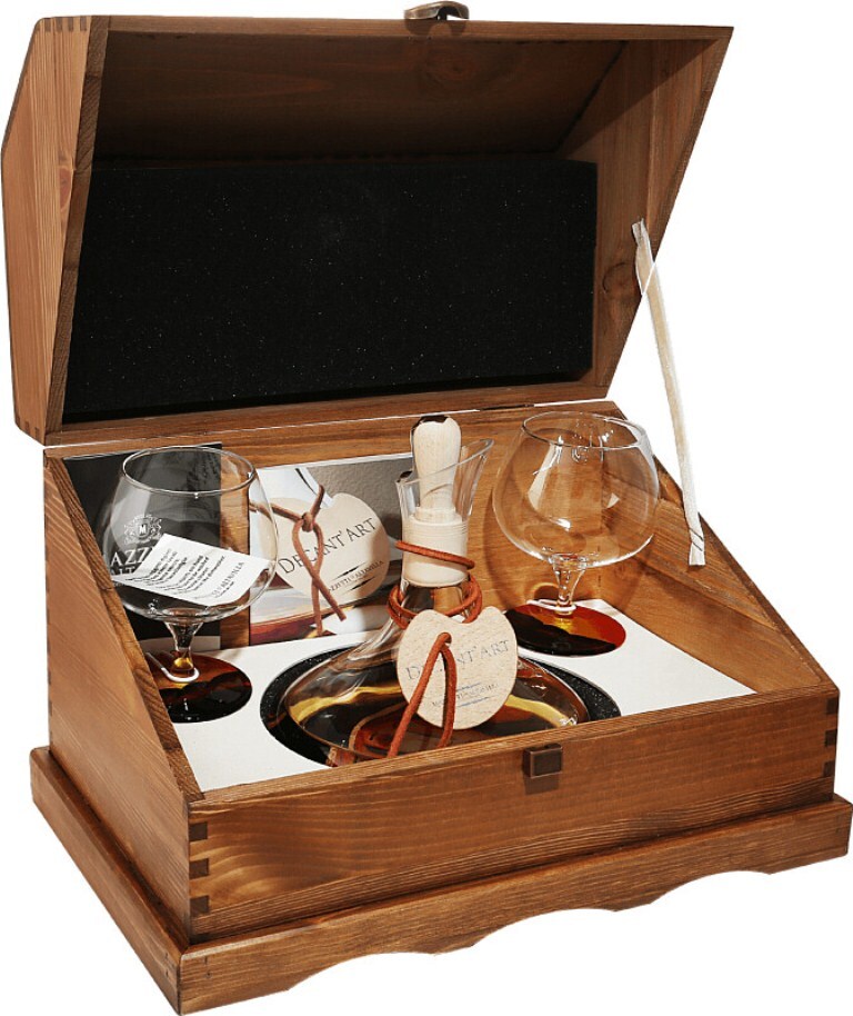 Заключенная в изысканный хрустальный графин, который упакован в роскошную деревянную коробку, Граппа ди Неббиоло да Бароло Инвеккьята станет отличным презентом к любому празднику. Одариваемый сможет по достоинству оценить благородный вкус столь великолепного напитка, получившего золотую медаль на конкурсе "Les Olympiades du vin, 2001".
