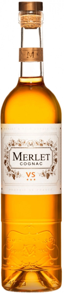 Коньяк "Merlet" класса VS, обладающий изысканным фруктово-цветочным ароматом и богатым вкусом, рождается в результате идеально подобранного ассамбляжа коньячных спиртов, полученных из винограда сорта Уни Блан методом двойной перегонки. Спирты получают из винограда, выращенного в регионах Фин Буа, Бон Буа и Пти Шампань. Коньяк выдерживается в течение двух лет в бочках из французского дуба и бутилируется при крепости 40%. Коньяк великолепен в чистом виде в качестве дижестива, прекрасно подходит для изготовления коктейлей.