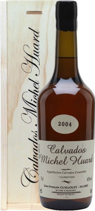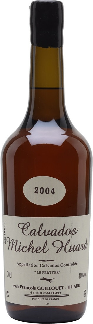 Michel Huard, "Le Pertyer", Calvados, 2004 — мягкий кальвадос, полученный путем дистилляции яблочного сидра из отборных яблок урожая 2004 года, которые выращиваются в апелласьоне Кальвадос. Для производства кальвадоса рекомендуется использовать 48 сортов яблок, которые разделены по вкусу на следующие критерии: сладкие, сладко-горькие, горькие и кислые. В последнее время молодыми производителями стало считаться более оптимальным соотношение 40% горьких, 40% сладких и 20% кислых яблок для получения высококачественного сидра. Ключевыми критериями в выборе сортов являются содержание танинов в сусле и кислотность.