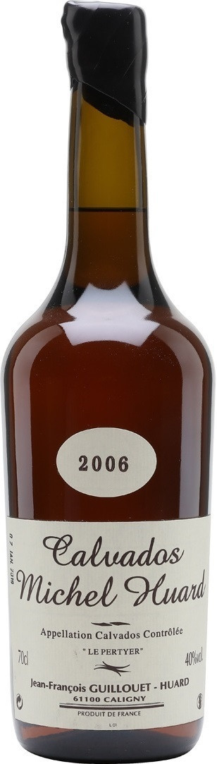 Michel Huard, "Le Pertyer", Calvados, 2006 — довольно пряный винтаж кальвадоса, полученный путем дистилляции яблочного сидра из отборных яблок урожая 2006 года, которые выращиваются в апелласьоне Кальвадос. Для производства кальвадоса рекомендуется использовать 48 сортов яблок, которые разделены по вкусу на следующие критерии: сладкие, сладко-горькие, горькие и кислые. В последнее время молодыми производителями стало считаться более оптимальным соотношение 40% горьких, 40% сладких и 20% кислых яблок для получения высококачественного сидра. Ключевыми критериями в выборе сортов являются содержание танинов в сусле и кислотность.