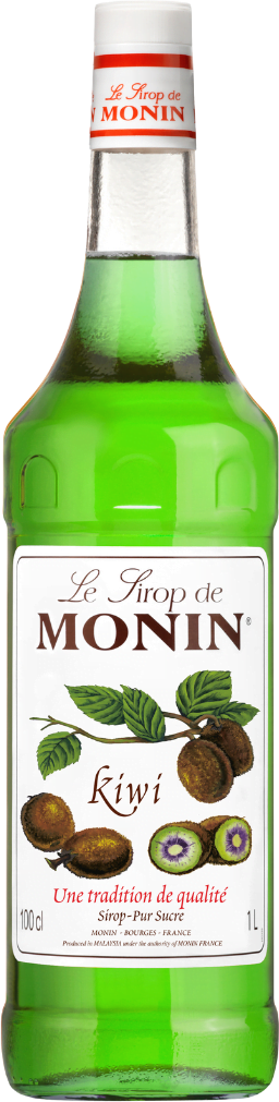 Первоначально завезенный из Китая, киви получил широкое распространение в Новой Зеландии, где и получил своё название, которым он обязан одноименной птице, обитающей на новозеландских островах. Сочный сладкий вкус сиропа Монин Киви с легкой, пощипывающей язык кислинкой — прекрасная основа для освежающих напитков: лимонада, содовой и безалкогольных миксов. Он также широко используется в качестве топпингов для мороженого, при изготовлении щербетов и алкогольных коктейлей на основе мартини.