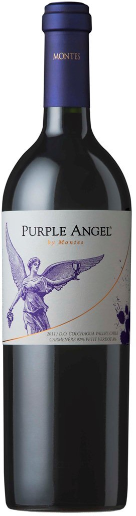 Montes, Purple Angel или "супер-Карменере" — роскошное нефильтрованное вино, представляющее сорт Карменере с новой, неизвестной до сих пор, стороны. "Purple Angel" — одно из первых чилийских вин из винограда Карменере, выращенного не во французском Бордо, а на теплых почвах Южной Америки. Вино создается с добавлением небольшой части сорта Пти Вердо и отличается мощным, концентрированным вкусом, высоким потенциалом хранения и насыщенным фруктовым ароматом. Виноград был выращен на двух виноградниках долины Кольчагуа. На первом из них — Apalta — виноград высаживают на крутых склонах, угол наклона которых составляет 45°, тем самым обеспечивая отличную экспозицию, способствующую достижению максимальной зрелости. Прохладный бриз океана и низкие ночные температуры позволяют винограду медленно развивать сортовые ароматы и кислотность. На втором винограднике Marchigue немного прохладнее из-за его более близкого соседства с океаном. Здесь преобладает сухой климат, обеспечивающий здоровье будущему урожаю. Весь виноград собирают исключительно вручную. Высококачественный виноград, тщательная винификация и выдержка в течение 18 месяцев в новых бочках из французского дуба позволили получить очень богатое вино с прекрасной структурой и хорошим потенциалом хранения. Перед употреблением рекомендуется декантация в течение часа.