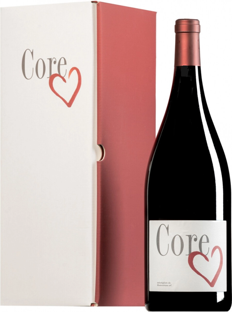 Вино "Core" появилось благодаря самоотдаче и глубоким познаниям известного энолога Рикардо Котарелла. Опытный винодел воплотил в жизнь вторую мечту владелицы винного хозяйства "Montevertrano" Сильвии Импарата. Первая мечта, уже осуществленная, — вино "Монтеветрано", высоко оцененное именитыми винными экспертами. Название нового вина — "Core" — в переводе с итальянского языка означает "ядро", а на местном диалекте Кампании оно означает "сердце" и произносится "корау". Не только название, но и концепция оформления винной бутылки подчинена главной цели создателей: произвести вино, олицетворяющее жизнь. Фронтальная этикетка выполнена в лаконичном дизайне — на белом фоне сочной акварелью с элегантной небрежностью росчерком изображено сердце. Минимализм цвета, понятный каждому символ любви и жизни — ничего лишнего. Вино "Core" — характерное, земное, дерзкое и одновременно гармоничное. Это вино, у которого есть сердце, полное жизни.