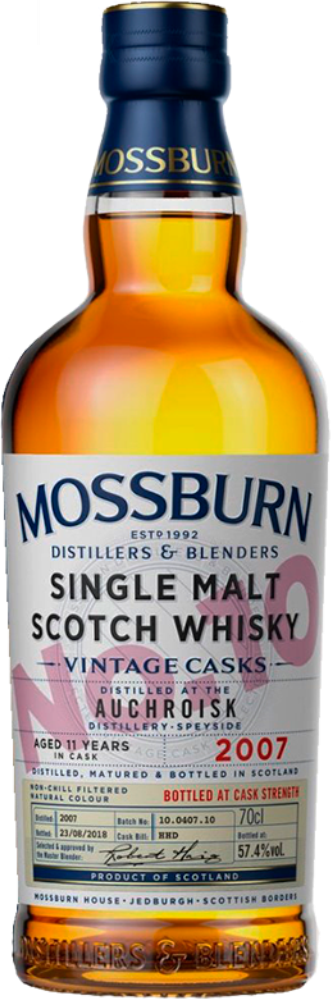 Виски "Vintage Casks" No.10 Auchroisk, 2007 был дистиллирован на винокуренном заводе Отруск в 2007 году. После этого виски выдерживался 11 лет в дубовой бочке № 10.0407.10. Розлив виски 23 августа 2018 года без холодной фильтрации и дополнительного окрашивания осуществила компания Моссберн.