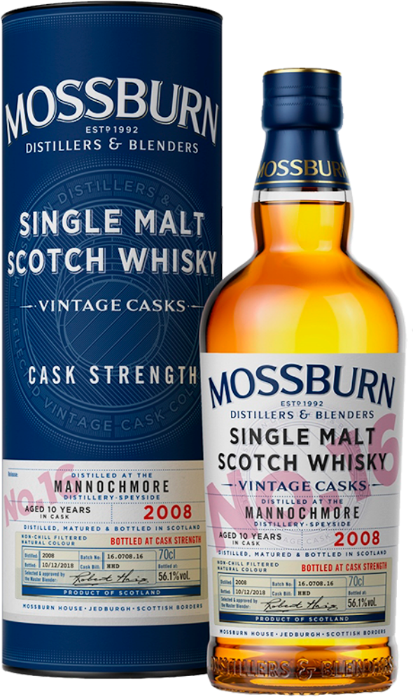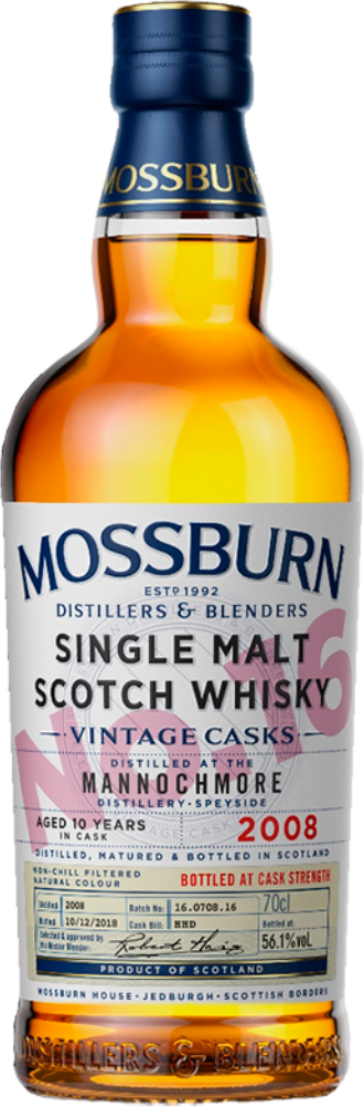 Виски "Vintage Casks" No.16 Mannochmore, 2008 был дистиллирован на винокуренном заводе Маннокмор в 2008 году. После этого виски выдерживался 10 лет в дубовой бочке № 16.0708.16. Розлив виски 10 декабря 2018 года без холодной фильтрации и дополнительного окрашивания осуществила компания Моссберн.