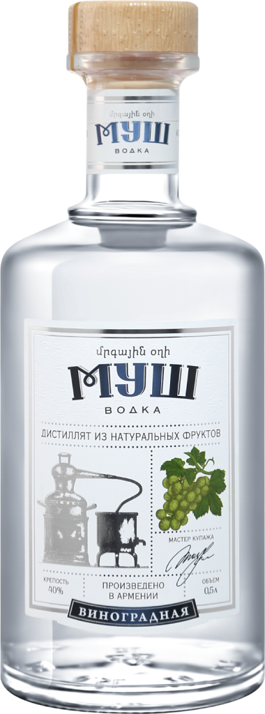 Муш, Виноградная — виноградная водка, обладающая приятным ароматом и хорошо сбалансированным вкусом. Водку изготавливают из спелых плодов винограда, выращенных на территории Армянского нагорья. Ягоды подвергаются ферментации и дистилляции, в результате чего будущий напиток приобретает характерные оттенки. Водка подается как дижестив, используется для сопровождения мясных, рыбных и овощных блюд под соусом, солений, закусок, а также в составе коктейлей.