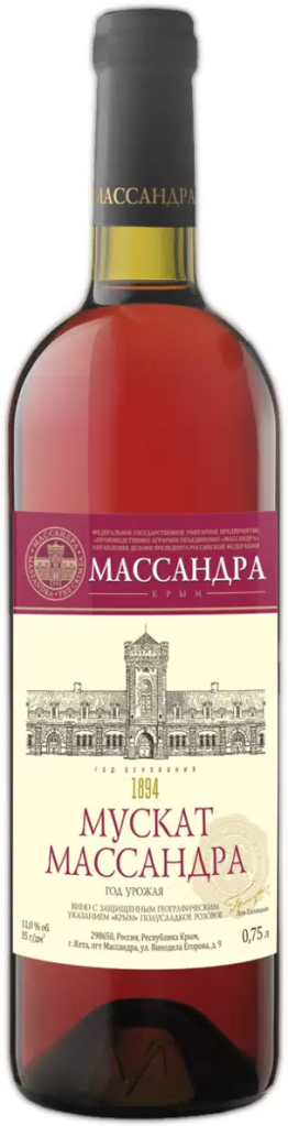 Розовое полусладкое вино Мускат "Массандра" Розовый изготавливается из винограда мускатных сортов, выращиваемого только предприятиями объединения "Массандра". Урожай собирают по достижении ягодами уровня сахара не меньше 18%. Сусло подвергается традиционной винификации при контролируемой температуре, затем вино выдерживается в дубовых бочках, которые располагаются в прохладных подвалах Массандры. Вино отлично сочетается с десертами, фруктами и сырами.