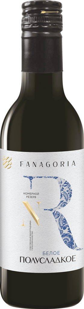 Вино "Номерной резерв" Белое полусладкое производится из отборного винограда белых сортов, выращенного на собственных виноградниках компании. Вина серии "Номерной резерв" производятся по классической технологии, но не проходят бочковую выдержку, поэтому способны в полной мере сохранить сортовой характер, чистую фруковость и особенности уникального фанагорийского терруара. Вина "NR" выполнены в легком, питком, ярком, ароматном, молодом стиле и созданы для повседневного удовольствия и сопровождения широкого спектра блюд.