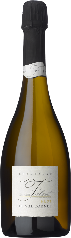 Nathalie Falmet, "Le Val Cornet" Brut, Champagne — роскошное белое шампанское, в производстве которого используется виноград сортов Пино Нуар и Пино Менье. Ягоды произрастают на участке "Ле Валь Корне", возраст виноградных лоз составляет 50 лет. Сбор урожая проводится исключительно вручную в момент оптимальной спелости ягод, на винодельне плоды подвергаются ферментации в стальных резервуарах и в барриках при контролируемой температуре 16°С. Вторичная ферментация с последующей выдержкой в бутылках проходит в течение 5 лет.